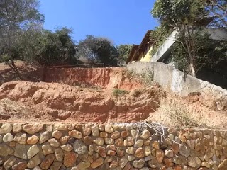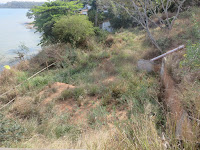Two years ago the beautiful forest next door to our house was uprooted, sections of the steep, sloping hillside were removed, and construction began on the foundation of a house. But just a few months after it started, the work stopped. Whether it was stopped by the authorities or the owner simply abandoned it because he ran out of money has never been quite clear. All we know is that people carted off the tools and the porta-potty, and Mark and I have since been watching nature return in all its exuberance. Here's how the lot was left when it was abandoned: